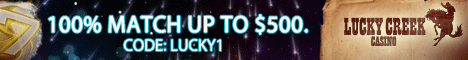 | Play now at Lucky Creek. Get a 100% bonus on your first deposit. |